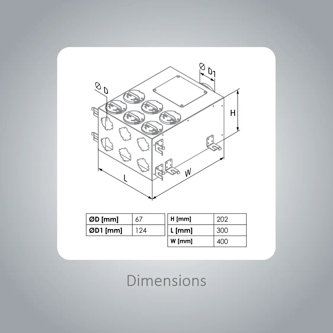 Distribution box, sound-insulated, 6xDN75/1x125mm, for BlauFast 75 System